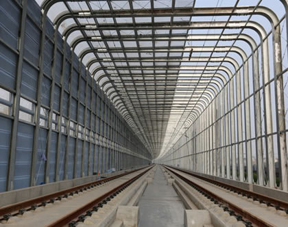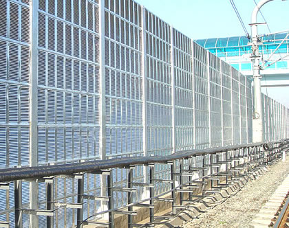 根據(jù)現(xiàn)在市場,常用的鐵路聲屏障吸隔聲板三類:*類:水泥聲屏障(高強水泥聲屏障),金屬吸音板和透明隔聲板。我廠金屬吸聲板面板采用鍍鋅金屬板,板厚常用0.8-1.0mm,吸聲板背板采用鍍鋅板,板厚0.8-1.0mm;吸聲填料采用48kg/m3離心玻璃棉,外包0.1mm厚度的杜邦薄膜。支撐鋼龍骨采用鍍鋅板不小于1.2mm,龍骨橫向間距≤60mm。 鐵路透明隔聲板透光率≥80%,鐵路透明隔聲板計權(quán)隔聲量(Rw)≥30db。