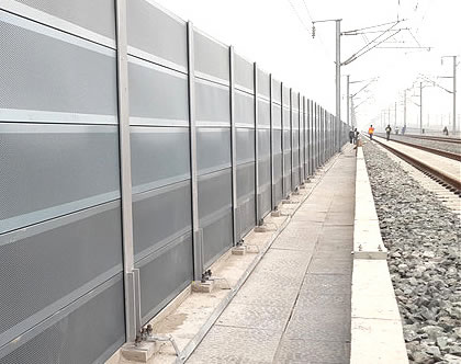鐵路聲屏障也成為鐵路隔音墻,高鐵聲屏障,它是根據(jù)當前高速鐵路列車運行速度200km/h以下產(chǎn)生噪音設計的*種聲屏障。此類產(chǎn)品的設計已較為充分地考慮了高架高速道路、城市輕軌、地鐵的風載、交通車輛的撞擊安全和全天候的露天防腐問題。