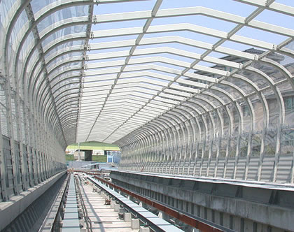 7、美觀可塑:根據(jù)不同需要可采用與金屬材料及透光材料組合的結(jié)構(gòu)形式,也可噴涂各種色彩及圖案,以達(dá)到景觀裝飾要求。